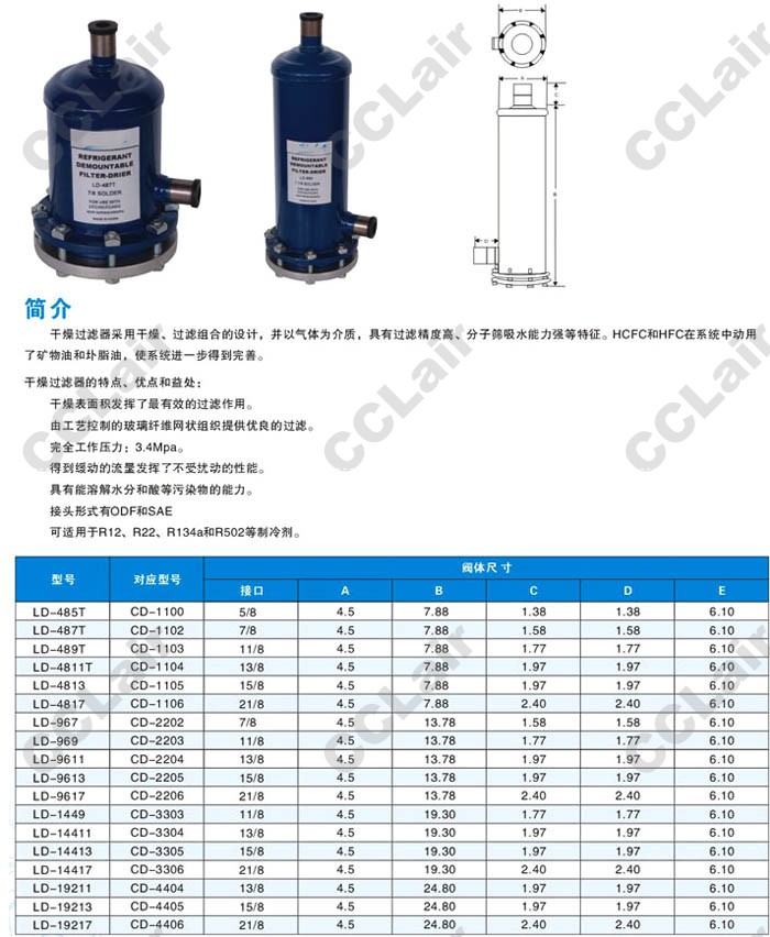 LD-485T,LD-487T,LD-489T,LD-4811T,LD-4813,LD-9613,LD-14417,LD-19211,可換芯干燥過濾器