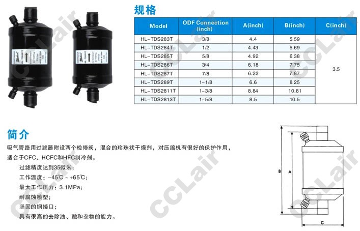 詳細(xì)信息 HL-TDS283T,HL-TDS284T,HL-TDS285T,HL-TDS286T,HL-TDS287T,HL-TDS289T,HL-TDS2811T,HL-TDS2813T,吸氣管路用過濾器