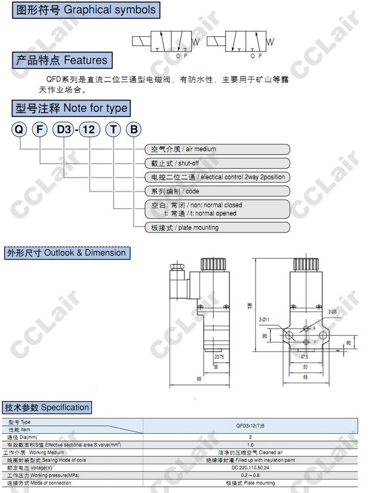 詳細信息 QFD3-12TB,QFD3-12B,直流二位三通型電磁閥