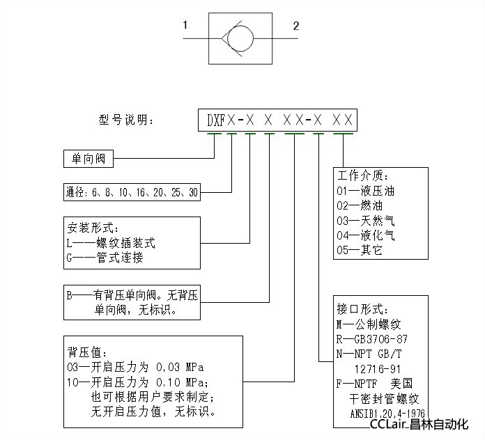 DXF6-G,DXF8-G,DXF10-G,DXF16-G,DXF20-G,DXF25-G,DXF30-G,單向閥