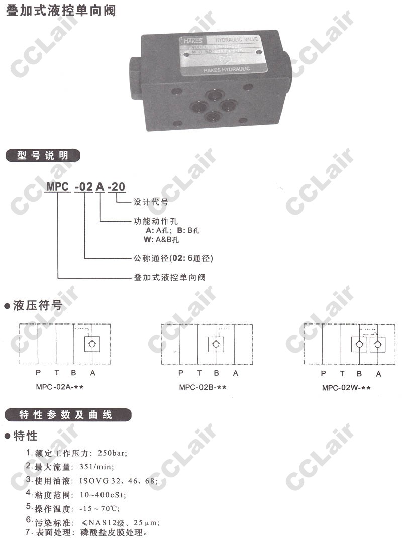 詳細信息 MPC-02A-20,MPC-02B-20,MPC-02W-20,疊加式液控單向閥