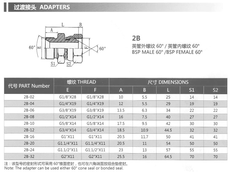 詳細(xì)信息 2B-02,2B-04,2B-06,2B-08,2B-10,2B-12,2B-16,2B-20,2B-24,2B-32,過渡接頭