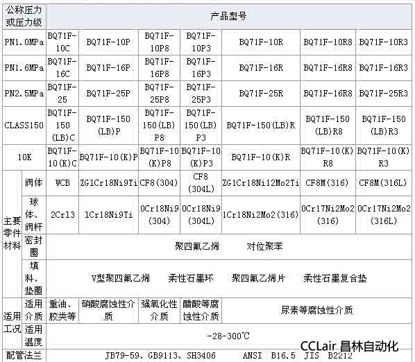 BQ71F對(duì)夾式保溫球閥主要型號(hào):