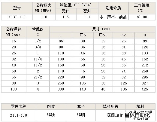 X13T-1.0二通內螺銅芯旋塞閥的詳細資料: