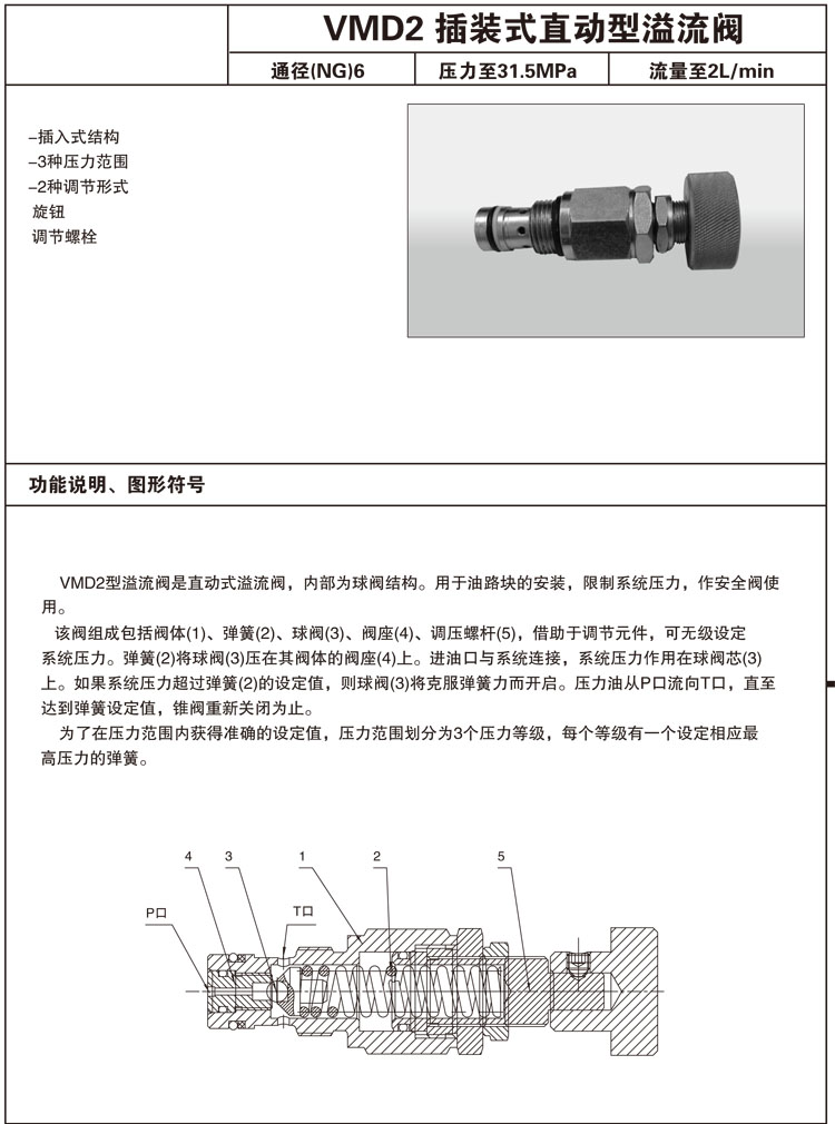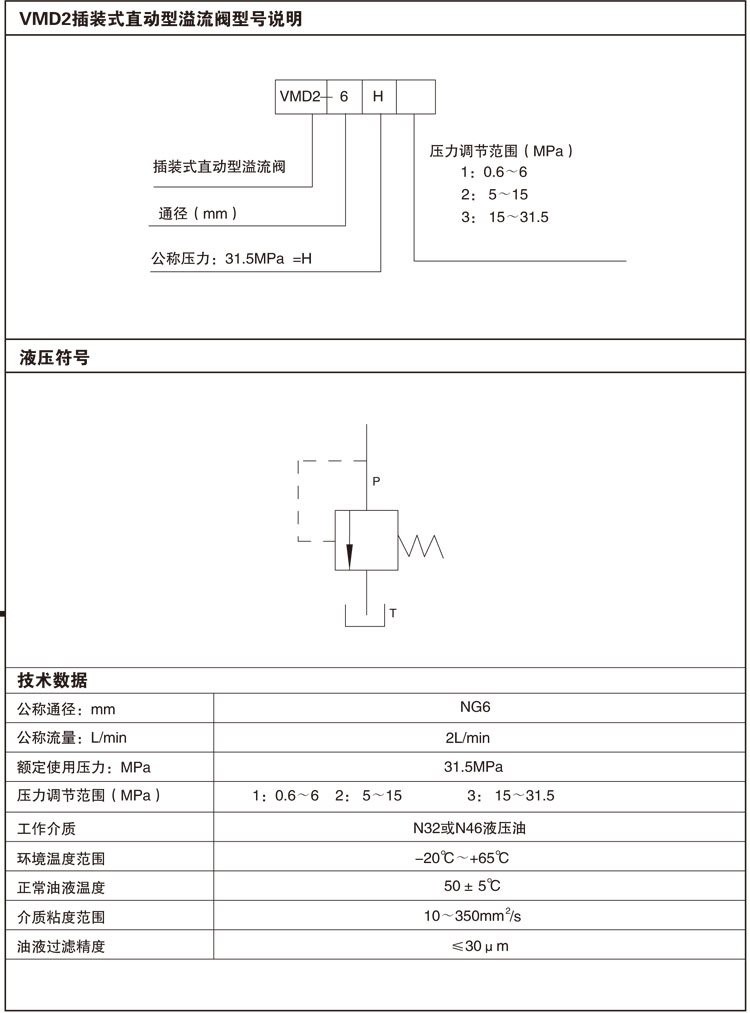 VMD2-6H1,VMD2-6H2,VMD2-6H3,插裝式直動型溢流閥