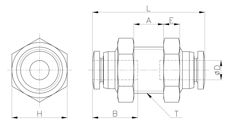 | Model | ¢D | T | L | E | A | B | H(Hex) | ORIFICE | WEIGHT(g) | BOX(EA) |