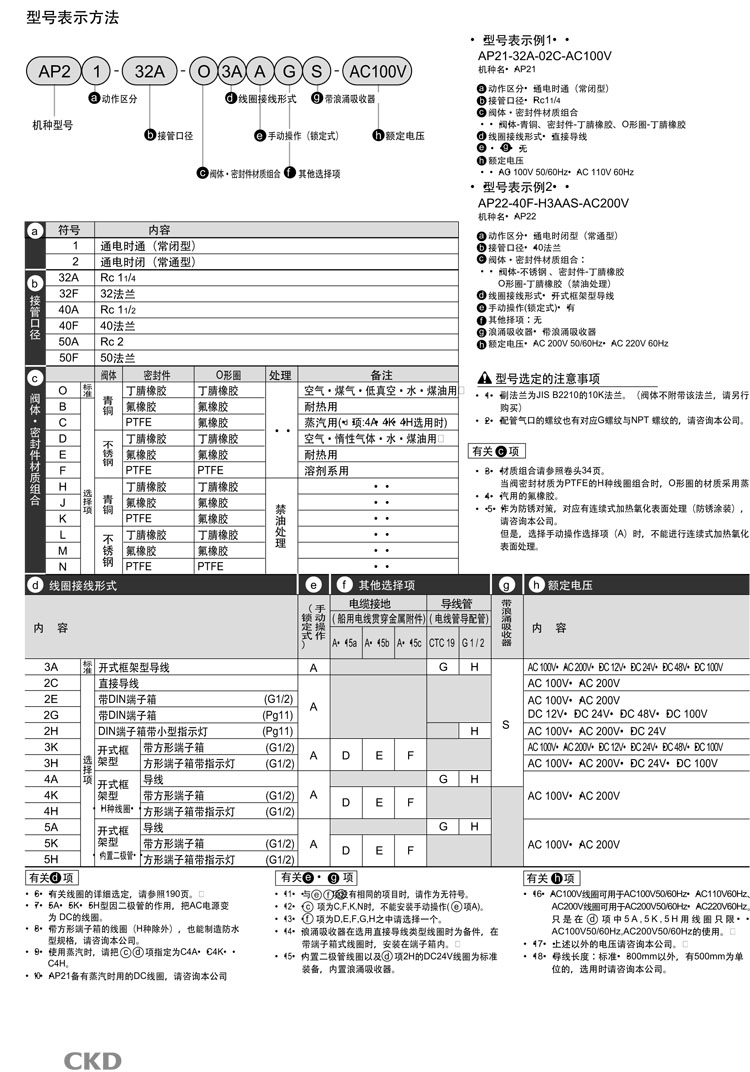 AP22-50F-N4A,AP22-50F-N4K,AP22-50F-N4H,AP22-50F-N5A,AP22-50F-N5K,AP22-50F-N5H,CKD先導式2通電磁閥