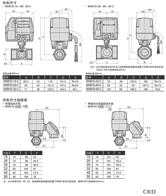 MXB1D-15-C,MXB1D-20-C,MXB1D-25-C,MXB1D-32-C,MXB1D-40-C,MXB1D-50-C,CKD電動式球閥2通閥