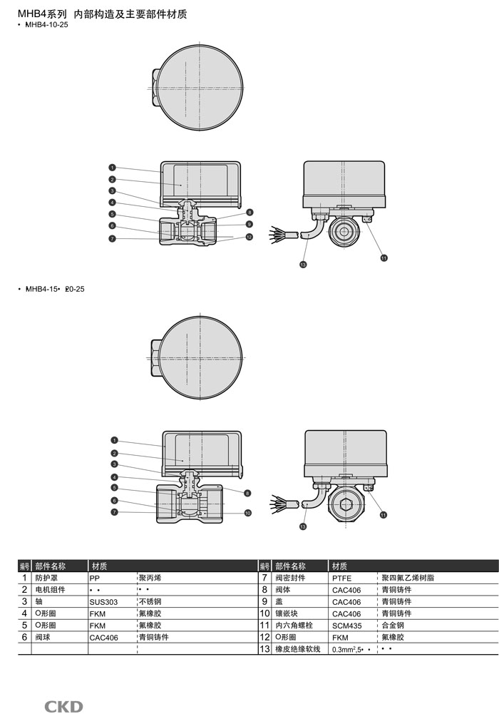 MHB4-10-25,MHB4-15-25,MHB4-20-25,MHG4-10-25,MHG4-15-25,MHG4-20-25,CKD電動式球閥2·3通電磁閥
