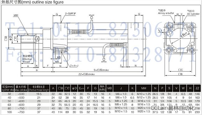 CP95SDB80-350,CP95SDB80-400,CP95SDB80-450,CP95SDB80-500,歐洲標(biāo)準(zhǔn)正方形缸體氣缸