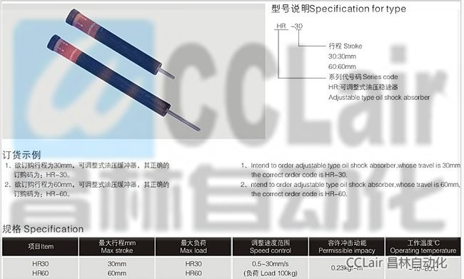 HR15,HR30,HR60,HR80,HR100,油壓緩沖器
