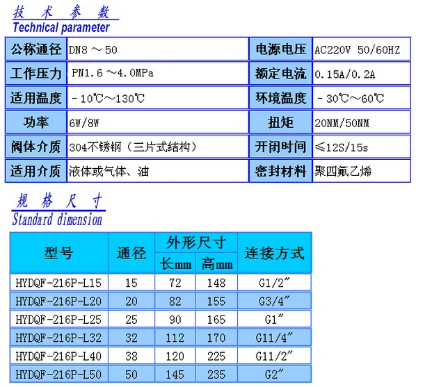 HYDQF-216P-L40,HYDQF-216P-L50,