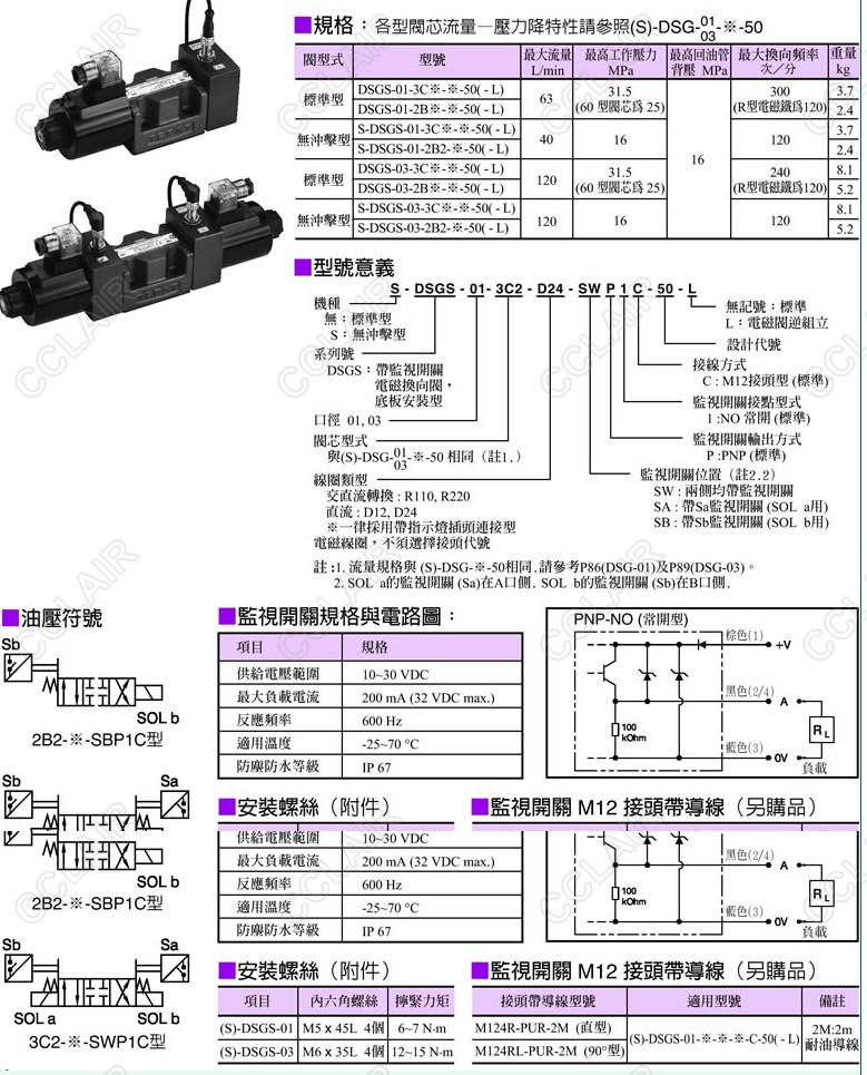 DSGS-01,S-DSGS-01,S-DSGS-03,DSGS-01-3C2-D24-SWP1C-50,DSGS-03,帶監(jiān)視開關(guān)電磁換向閥YUKEN