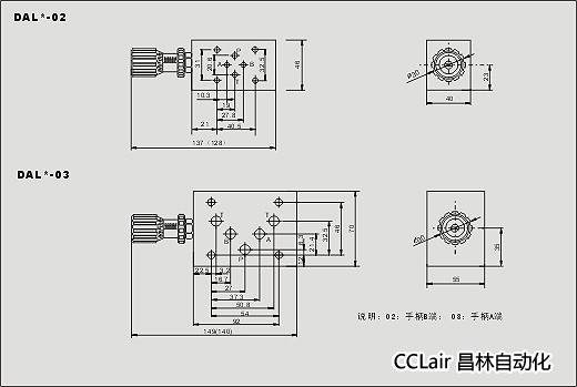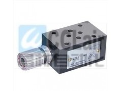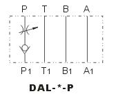DAL型疊加式節(jié)流單向閥,它是單向閥和節(jié)流閥串聯(lián)組合的一種節(jié)流單向閥,它的作用是只允許油液?jiǎn)畏较蛲ㄟ^(guò)并用節(jié)流閥進(jìn)行流量調(diào)節(jié),而反向則截止。