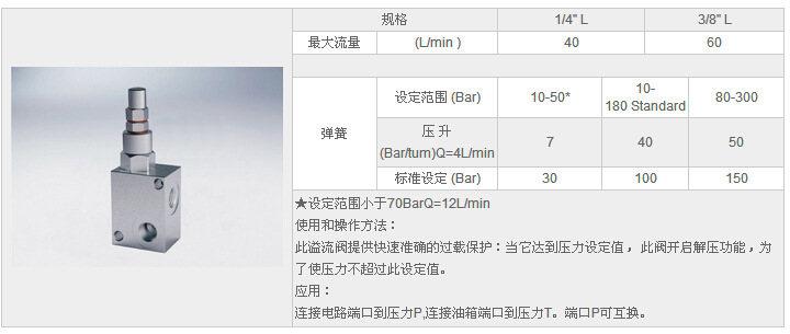 詳細(xì)信息 HYVMP 1/4" L,HYVMP 3/8" L,小流量溢流閥