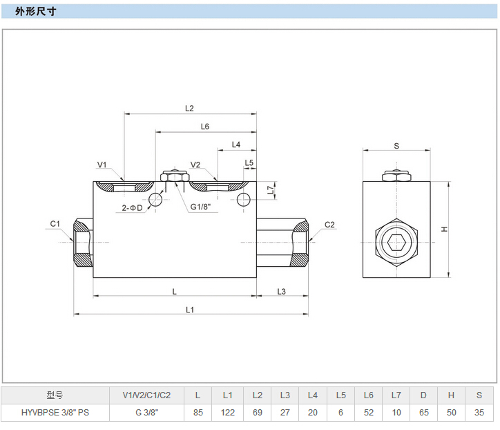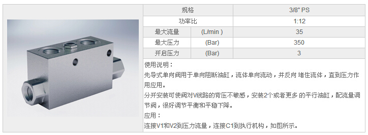 詳細信息 HYVBPSE 3/8" PS,外單先導式單向閥