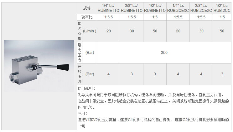 詳細信息 HYVBPSE 1/4" Lc/RUBINETTO,HYVBPSE 3/8" Lc/RUBINETTO,HYVBPSE 1/2" Lc/RUB.2 CC,單先導式單向閥
