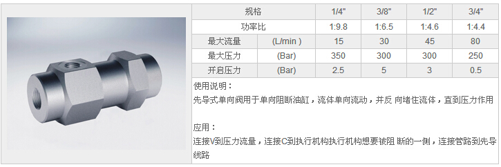 HYVBPSL 1/4",HYVBPSL 3/8",HYVBPSL 1/2",HYVBPSL 3/4",3位單先導(dǎo)式單向閥