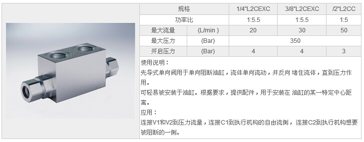 詳細(xì)信息 HYVBPSE 1/4" L2 CEXC,HYVBPSE 3/8" L2CEXC,HYVBPSE 1/2" L2 CC,單先導(dǎo)式單向閥