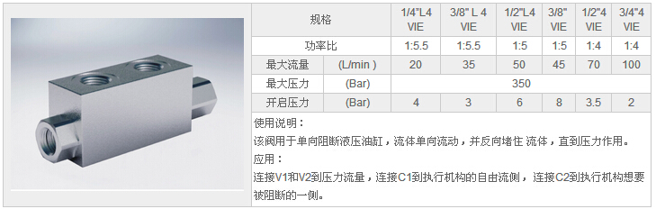 詳細(xì)信息 HYVBPSE 1/4" L4 VIE,HYVBPSE 3/8" L4 VIE,HYVBPSE 1/2" L4 VIE,HYVBPSE 3/8" 4 VIE,HYVBPSE 1/2" 4 VIE,單先導(dǎo)式單向閥
