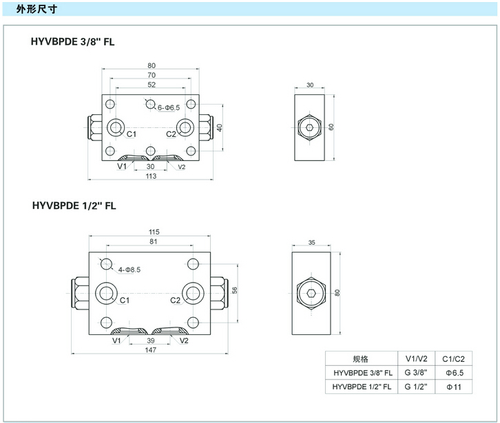 詳細(xì)信息 HYVBPDE 3/8" FL,HYVBPDE 1/2" FL,先導(dǎo)式雙單向閥