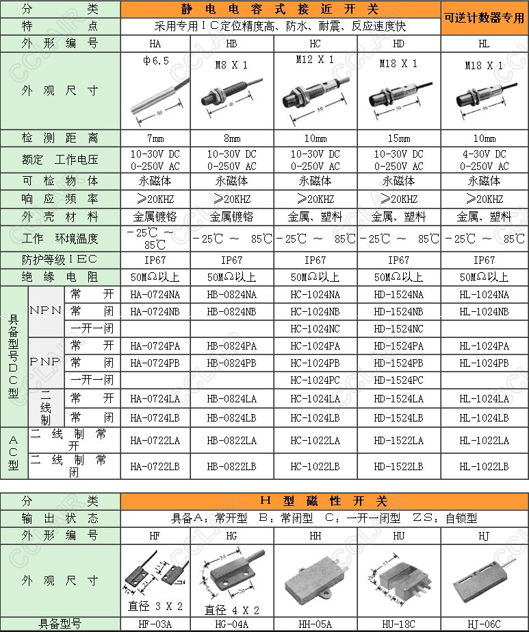 HA-0724NA,HB-0824NA,HC-1024NA,HD-1524NA,HL-1024NA,HA-0724NB,HB-0824NB,HC-1024NB,靜電電容式接近開關(guān)