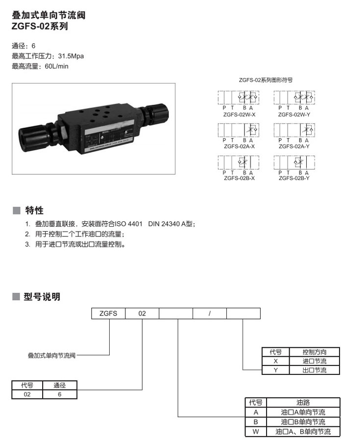 ZGFS-02W-X,ZGFS-02A-X,ZGFS-02B-X,ZGFS-02W-Y,ZGFS-02A-Y,ZGFS-02B-Y,疊加式單向節(jié)流閥
