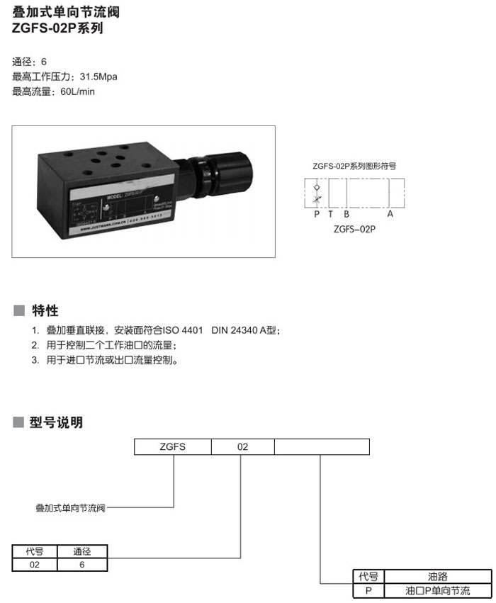 詳細信息 ZGFS-02P,疊加式單向節(jié)流閥