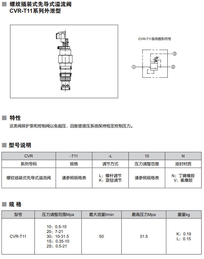 CVR-T11-L10N,CVR-T11-K10N,CVR-T11-L20N,CVR-T11-L30N,CVR-T11-L1SN,CVR-T11-L2SN,螺紋插裝式先導式溢流閥 詳細信息 CVR-T11-L10N,CVR-T11-K10N,CVR-T11-L20N,CVR-T11-L30N,CVR-T11-L1SN,CVR-T11-L2SN,螺紋插裝式先導式溢流閥