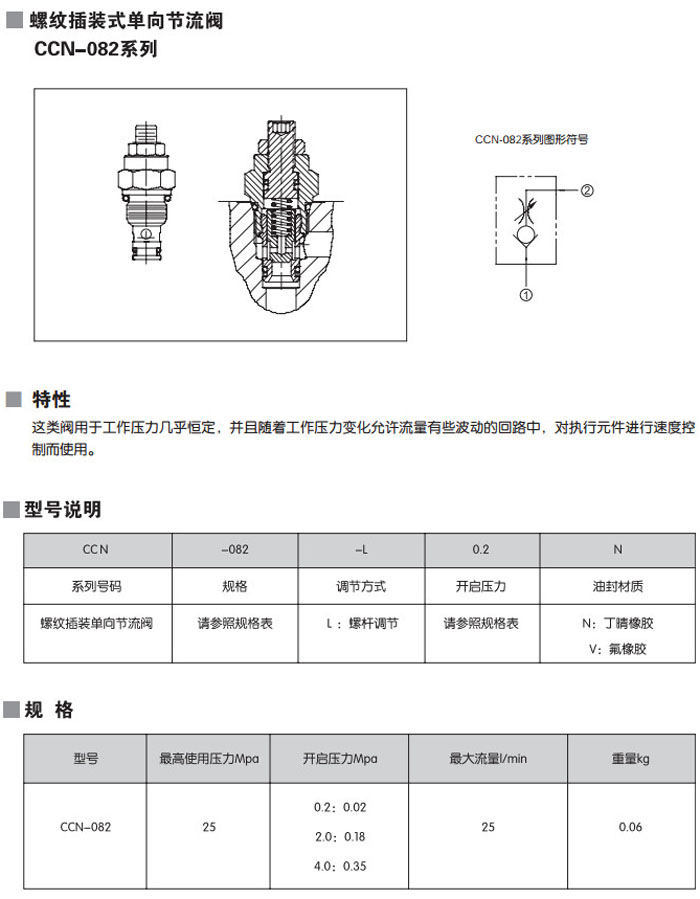 CCN-082-L0.2N,CCN-082-L0.2V,CCN-082-L2.0N,CCN-082-L2.0V,CCN-082-L4.0N,CCN-082-L4.0V,螺紋插裝式單向節(jié)流閥 詳細(xì)信息 CCN-082-L0.2N,CCN-082-L0.2V,CCN-082-L2.0N,CCN-082-L2.0V,CCN-082-L4.0N,CCN-082-L4.0V,螺紋插裝式單向節(jié)流閥