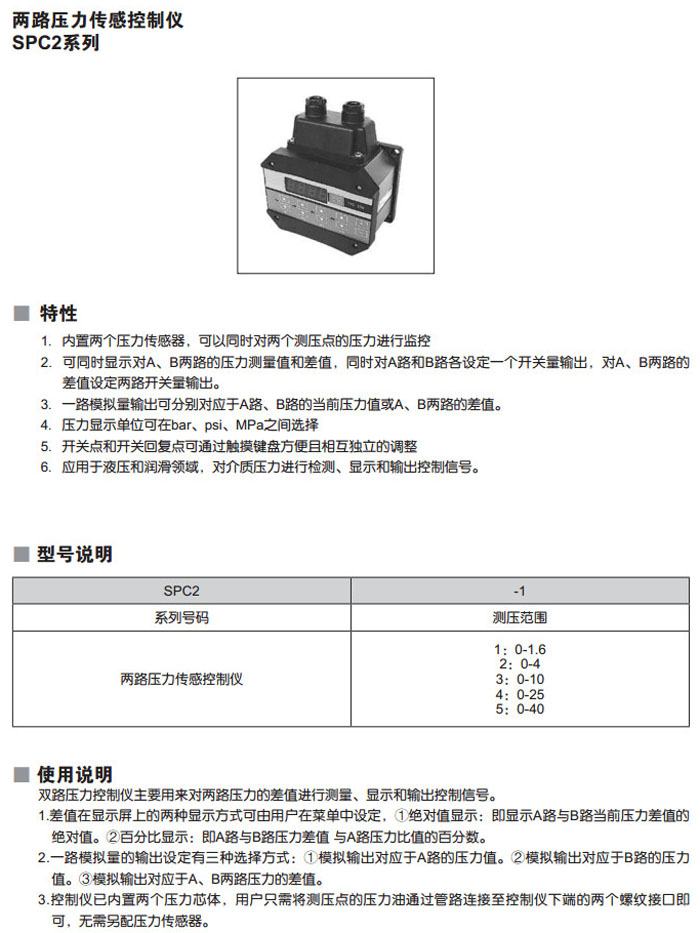 SPC2-1,SPC2-2,SPC2-3,SPC2-4,SPC2-5,兩路壓力傳感控制儀 詳細(xì)信息 SPC2-1,SPC2-2,SPC2-3,SPC2-4,SPC2-5,兩路壓力傳感控制儀
