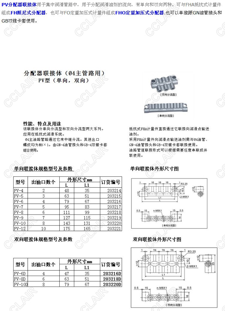 PV-4,PV-5,PV-6,PV-7,PV-8,PV-9,PV-10,PV-12,PV-6D,PV-8D,PV-10D,分配器聯(lián)接體
