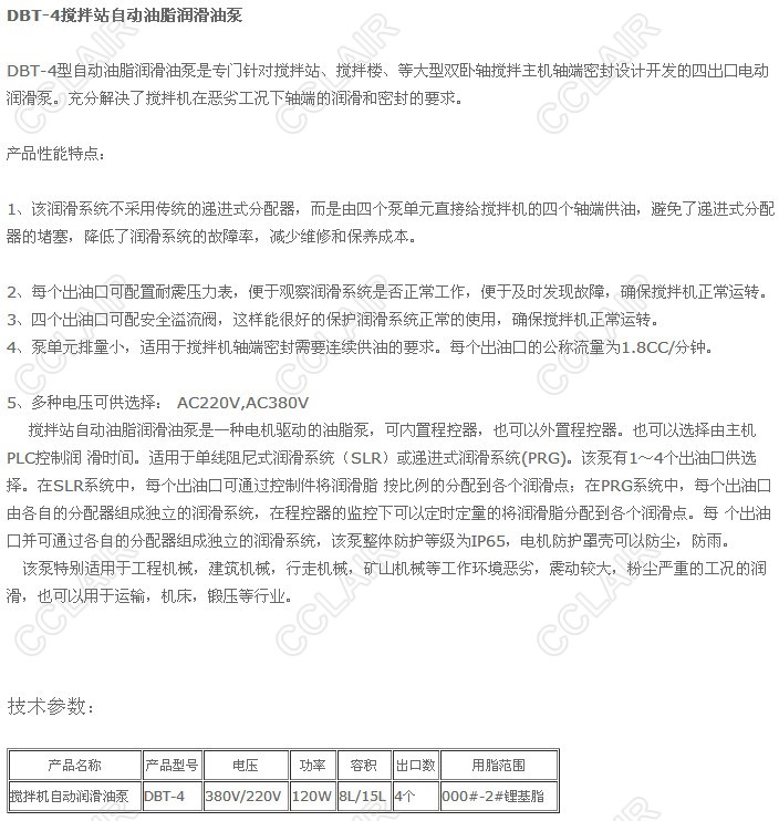 詳細信息 DBT-4,攪拌站自動油脂潤滑油泵