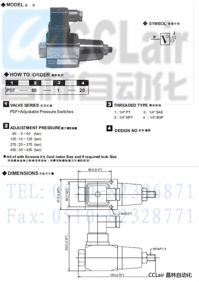 PSF-60-1-20,PSF-125-1-20,PSF-275-1-20,PSF-400-1-20,調(diào)整式壓力開關(guān),