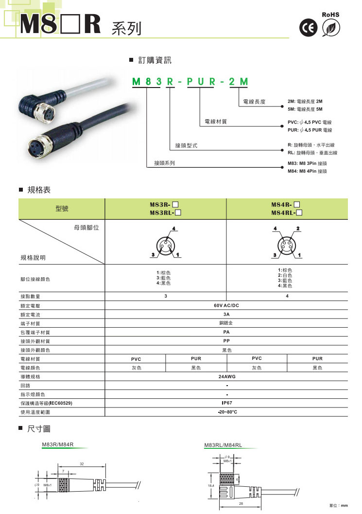 M83RL-PVC-5M,M84R-PUR-2M,M84-PUR-5M,M84R-PVC-2M,M84R-PVC-5M,M84RL-PUR-2M,,