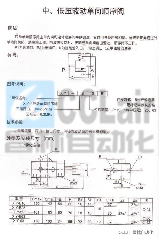 詳細信息 XIY-B10B,XIY-B25B,XIY-B63B,XIY-25B,XIY-63B,液動單向順序閥,生產(chǎn)廠家,價格