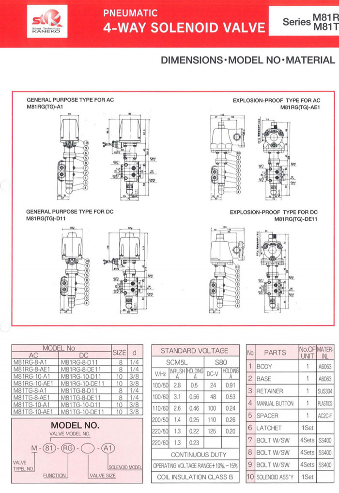 M81RG-8-A1,M81RG-10-A1,M81TG-8-A1,M81TG-10-A1,M81RG-8-D11,KANEKO氣動4路電磁閥