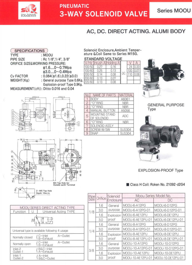 MOOU-6-A12PG,MOOU-8-A12PG,MOOU-10-A12PG,MOOU-6-D12PG,MOOU-8-D12PG,MOOU-10-D12PG,KANEKO氣動3路電磁閥
