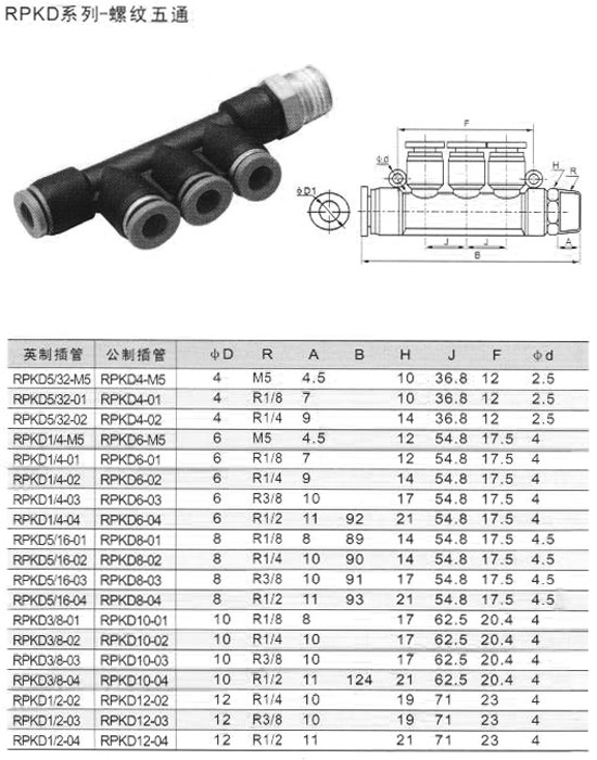 RPKD5/32-M5,RPKD5/32-01,RPKD4-02,RPKD6-M5,RPKD8-04,RPKD10-01,螺紋五通接頭