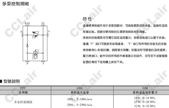 PPC-100L-14M,PPC-250L-14M,PPC-100L-25M,PPC-250L-25M,PPC-100L-32M,PPC-250L-32M,多泵控制閥組