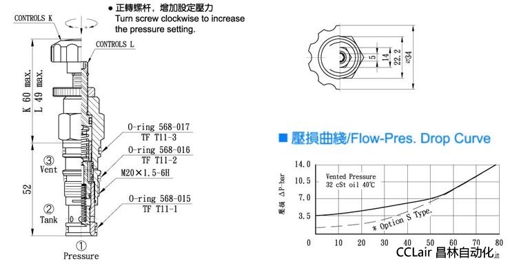 | CRV-T11 | 透氣型 Vented type 引導(dǎo)型 Pilot operated | 50/min | 315bar | K:0.19Kg L:0.15Kg |