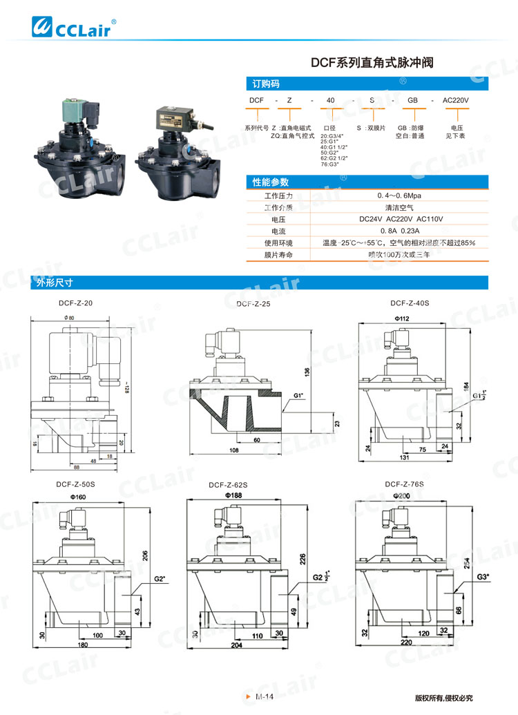 直角式脈沖閥DCF-Z-20,DCF-Z-25,DCF-Z-40S,DCF-Z-50S,DCF-Z-62S,DCF-Z-76S,