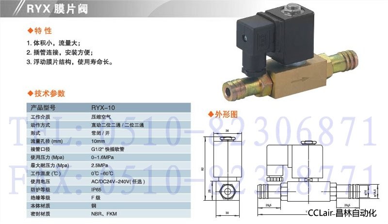 詳細信息 RYX-10,直動二位二/三通電磁閥