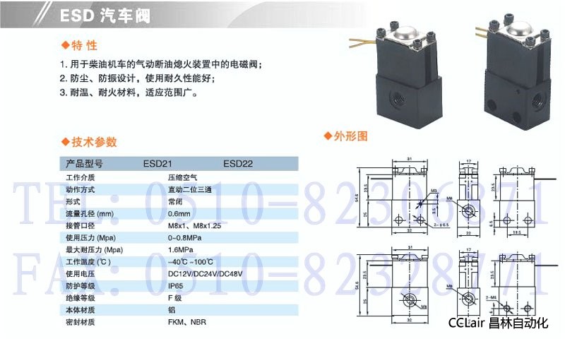 詳細信息 ESD21,ESD22,直動二位三通汽車閥