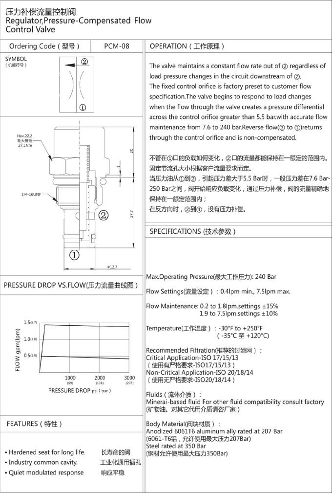 詳細(xì)信息 PCM-08,壓力補(bǔ)償流量控制閥