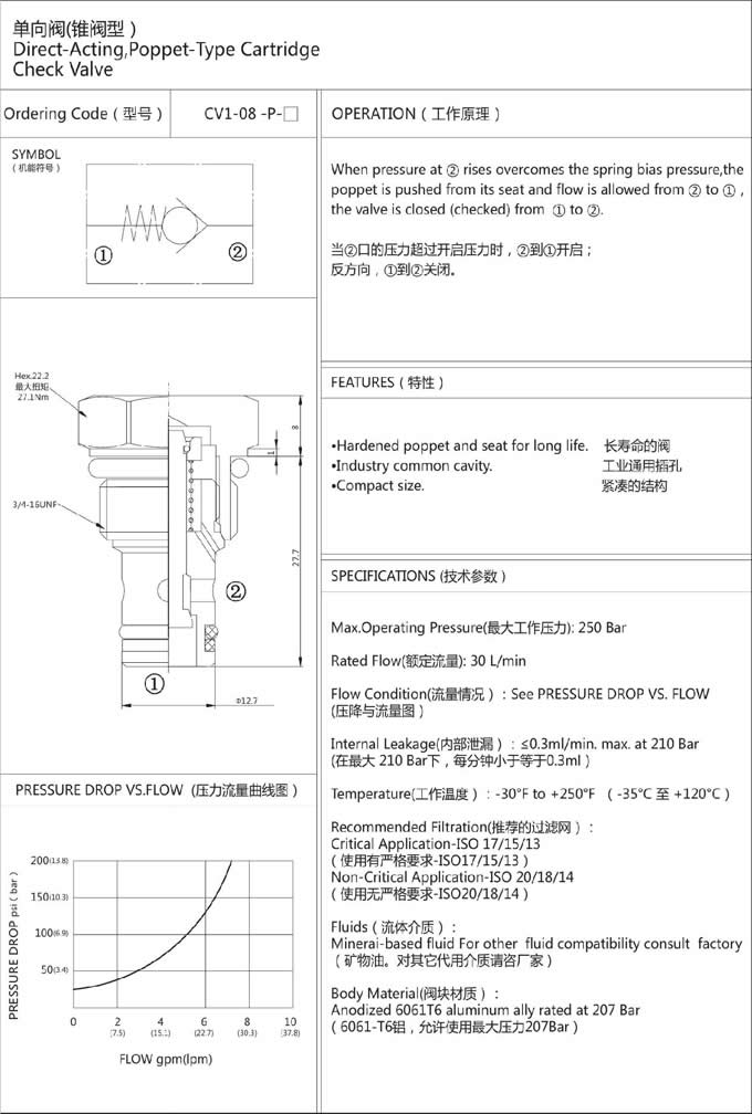 詳細(xì)信息 CV1-08-P-14,CV1-08-P-41,CV1-08-P-55,單向閥