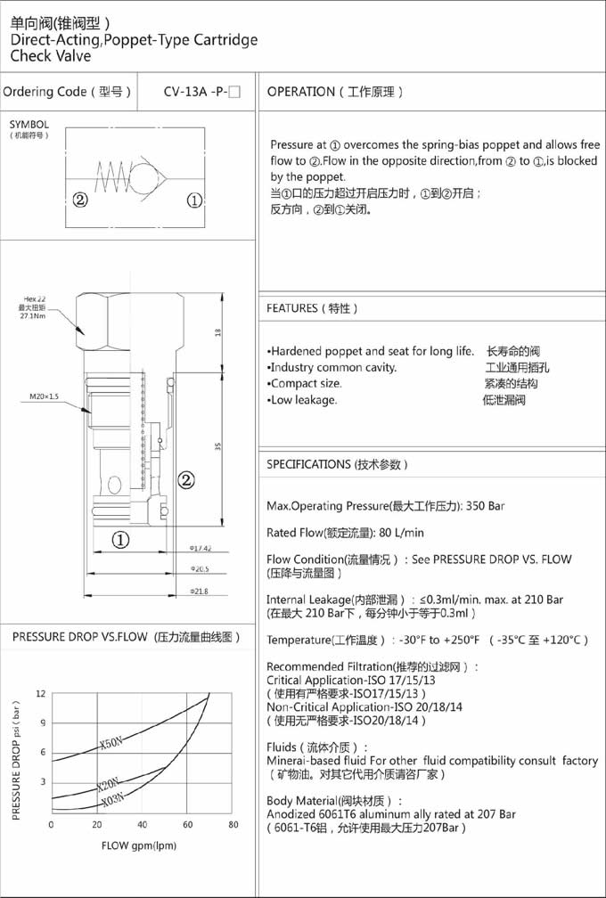 詳細(xì)信息 CV-13A-P-03,CV-13A-P-10,CV-13A-P-20,CV-13A-P-35,CV-13A-P-50,單向閥