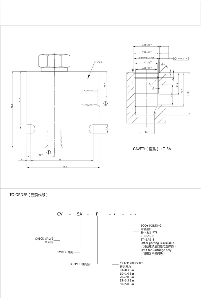 詳細信息 CV-5A-P-03,CV-5A-P-10,CV-5A-P-20,CV-5A-P-35,CV-5A-P-50,單向閥