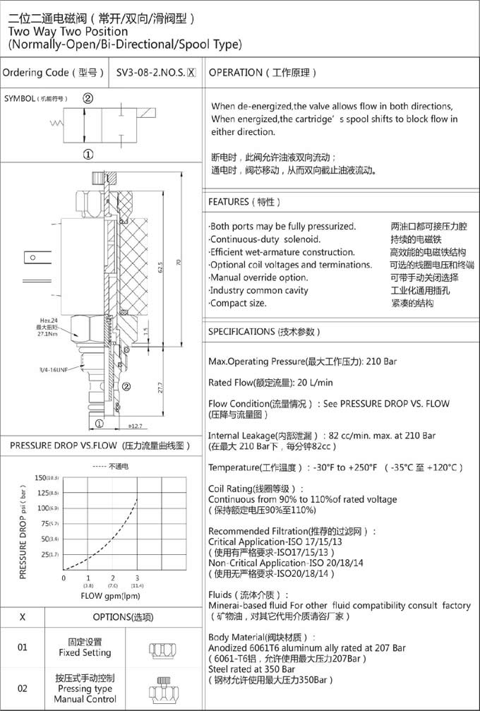 SV3-08-2NOS,二位二通電磁閥