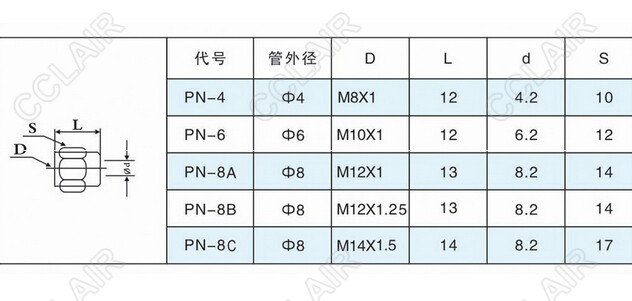 詳細信息 PN-4,PN-6,PN-8A,PN-8B,PN-8C,螺線接頭